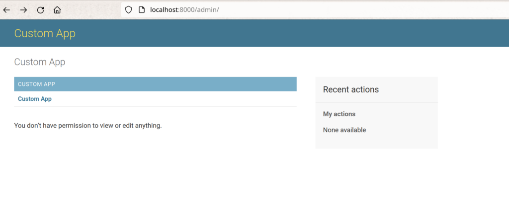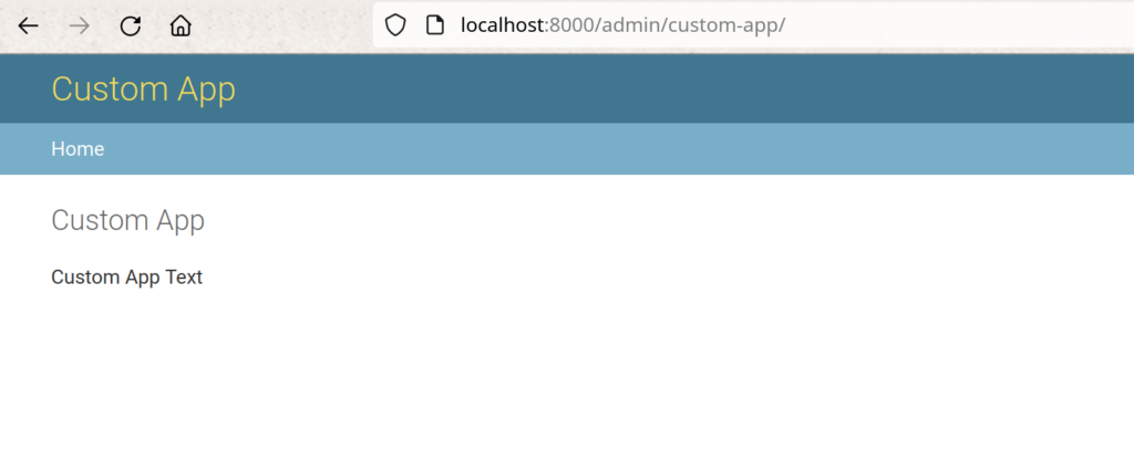 Then we create the template for custom app view in templates/admin/custom_app_view.html