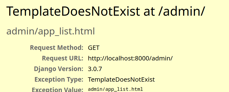 The reason why I got the error is because at that specific version, Django has no app_list.html file. So, you have to create it manually in templates/admin/app_list.html